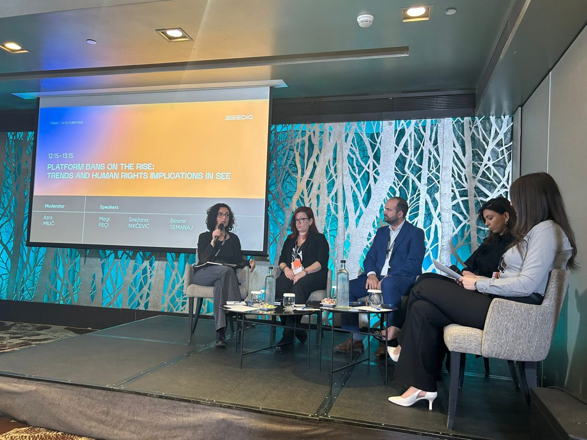 The panel opened an important conversation about the growing trend of platform bans in South-Eastern Europe and their impact on freedom of expression, political participation, and privacy rights. Drawing on BIRN’s regional monitoring of digital rights violations, it explored the timing and legal implications of bans, their impact on democratic processes, and strategies for safeguarding civic space.